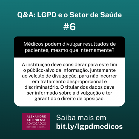 - 6. Instituições de saúde podem divulgar resultados ou evoluções clínicas de pacientes, mesmo que internamente?