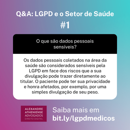 Os dados pessoais coletados na área da saúde são considerados sensíveis à luz da LGPD em face dos riscos que a sua divulgação pode trazer diretamente à vida do titular. O paciente pode ter sua privacidade e honra afetados, por exemplo, por uma simples divulgação de seu peso.